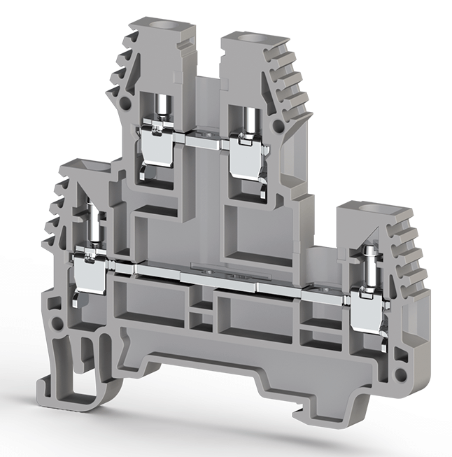 2.5 mm², Screw connection, Double-level 1 In 1 Out terminal block, Insulation material PA, Gray